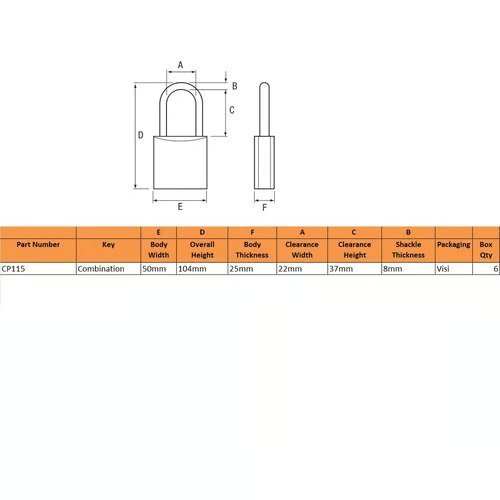 - Hardened steel 1.5 shackle